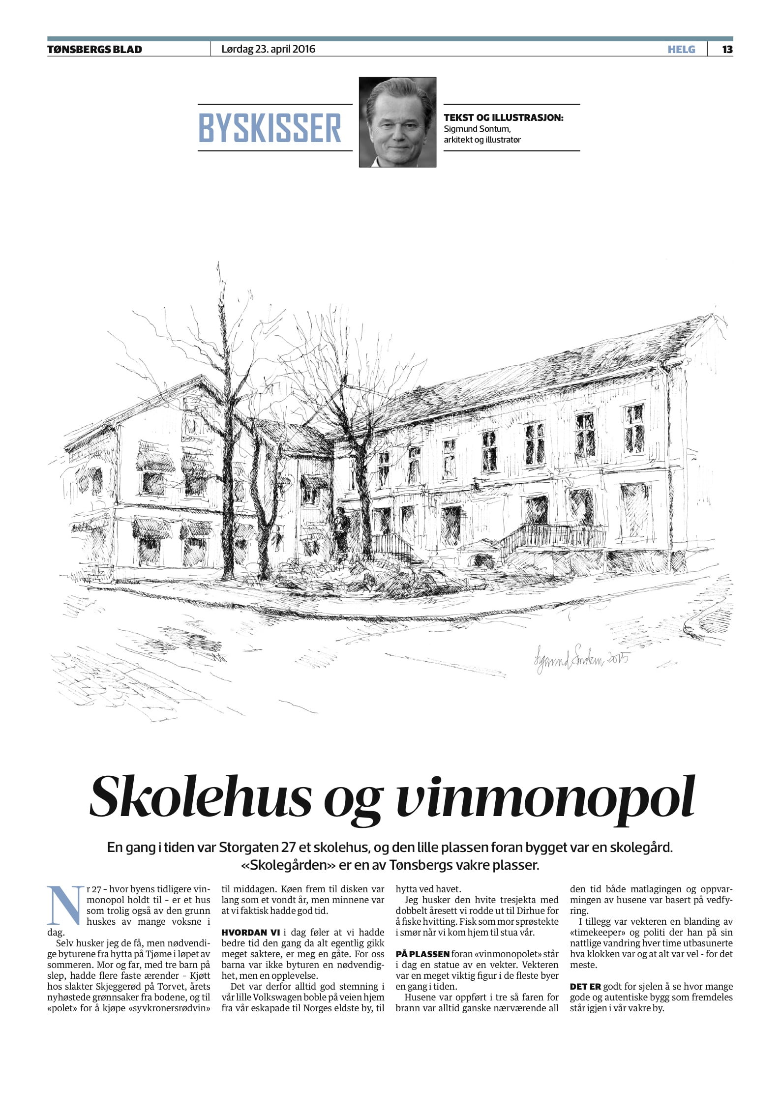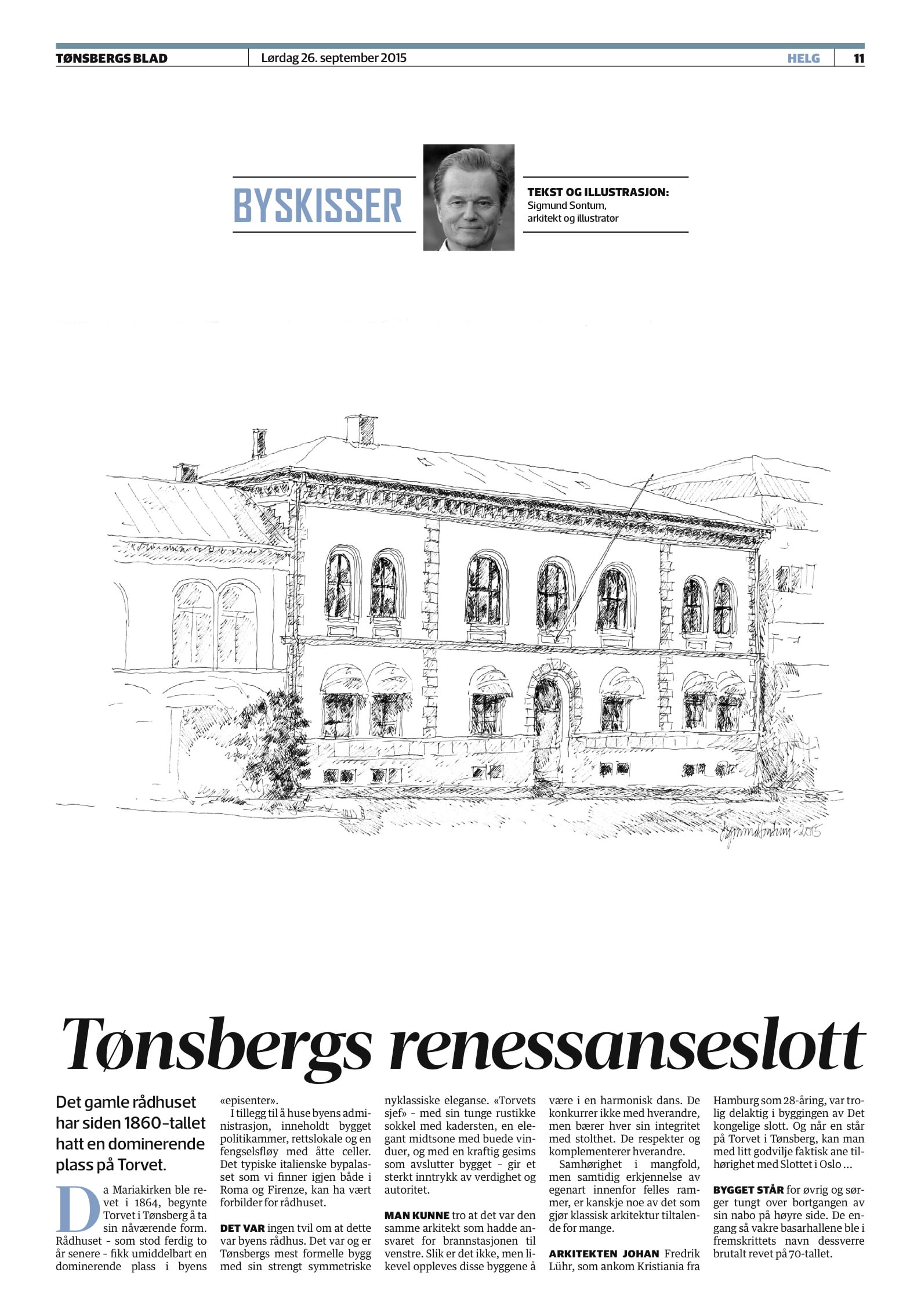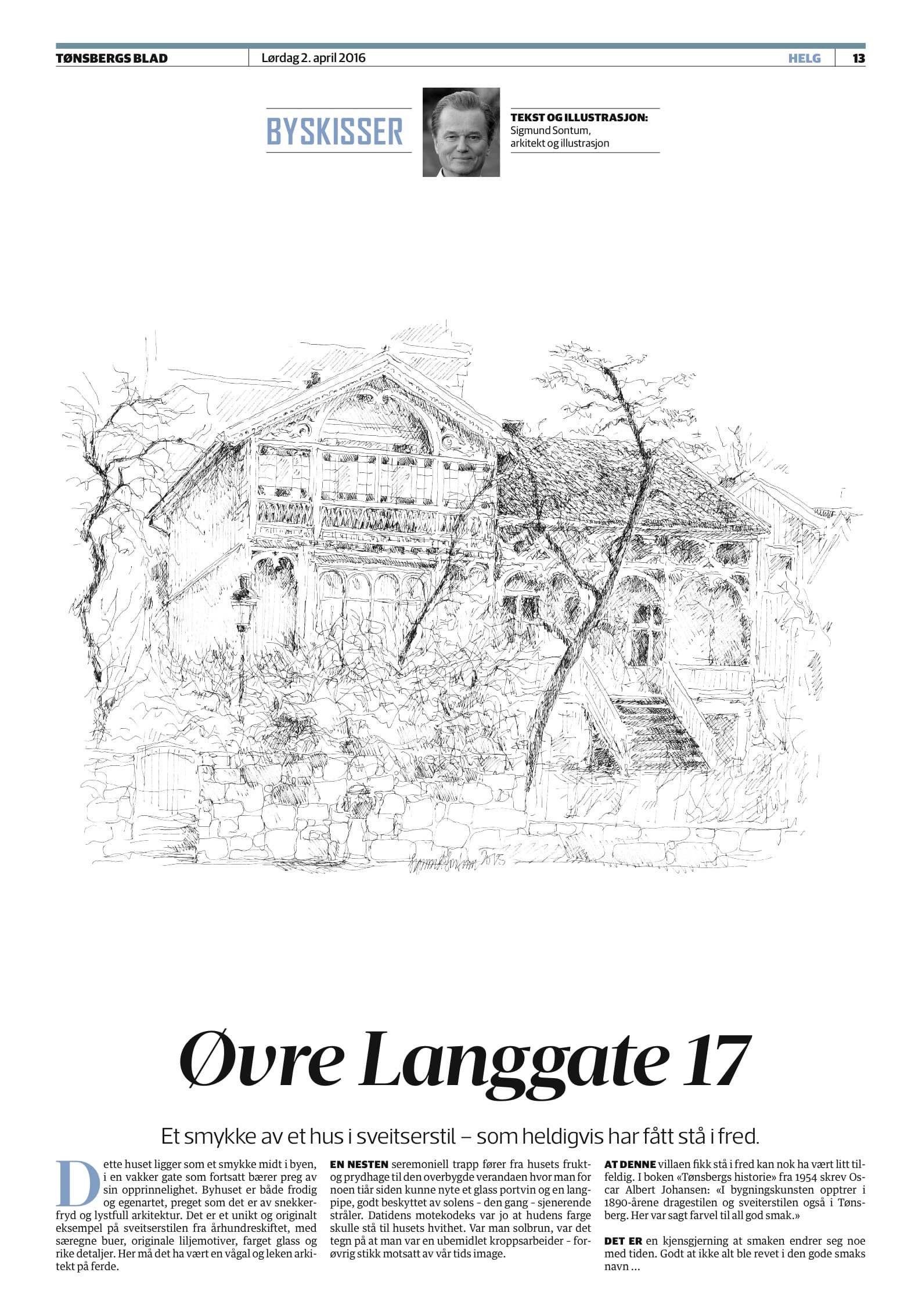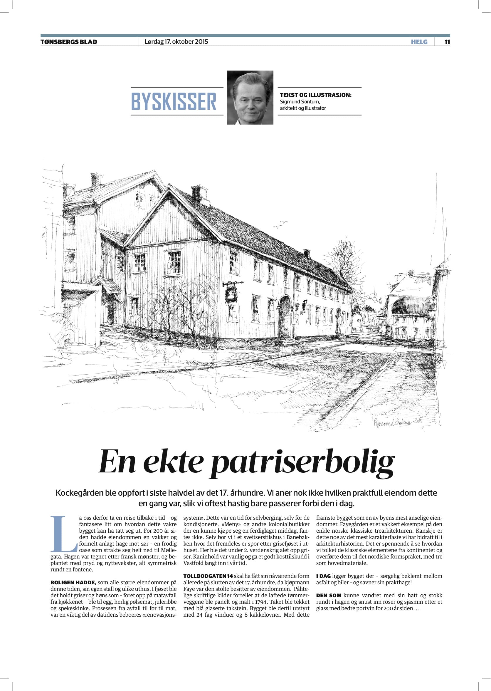 De store åpne plasser langs denne tidligere riksveien skal fylles med boliger og forretninger, eksisterende bebyggelse er under utvikling og selve gateløpet skal omformes. Det er grunn til å foreta «dypdykk» i byens historie og identitetsutvikling for at Tønsberg skal bli beriket på verdig måte. Det er det viktig å forstå hvordan byen ble formet gjennom tusen år lang historie, når den nå skal utvikles gjennom grep som vil få stor betydning for vår tilhørighet og våre opplevelser.